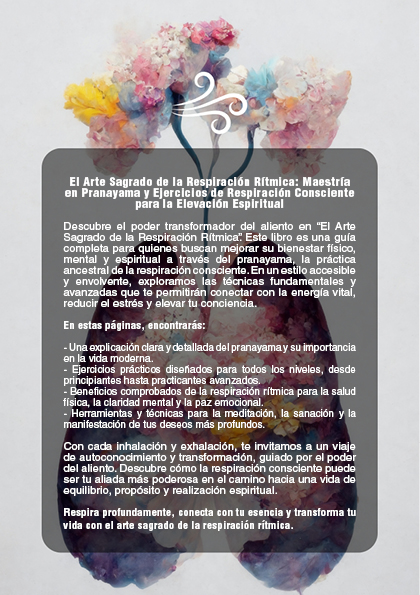 Disponible en formato PDF, «El Arte Sagrado de la Respiración Rítmica: Maestría en Pranayama y Ejercicios de Respiración Consciente» es tu compañero ideal en el camino hacia una vida más equilibrada, consciente y plena. Transforma cada inhalación y exhalación en un acto de sanación y crecimiento espiritual.