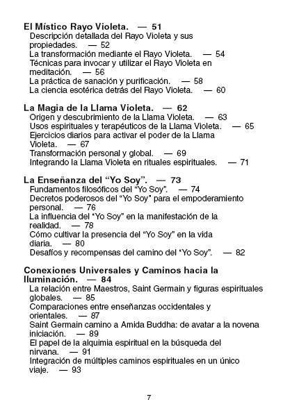 «Saint Germain: Maestro del Rayo Violeta» ofrece un entendimiento profundo de las enseñanzas de Saint Germain, incluyendo técnicas avanzadas de meditación, visualización y la práctica de la Llama Violeta. Es ideal para cualquier persona que desee profundizar su camino espiritual y aplicar principios que promuevan el crecimiento personal y el cambio positivo en el mundo.